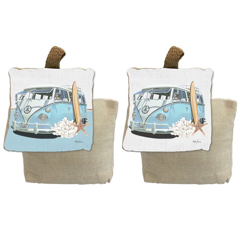 SET OF TWO COMBI BEACH DOORSTOPS IN BLUE AND WHITE TONES AND READY TO STOP THOSE DOORS SLAMMING.