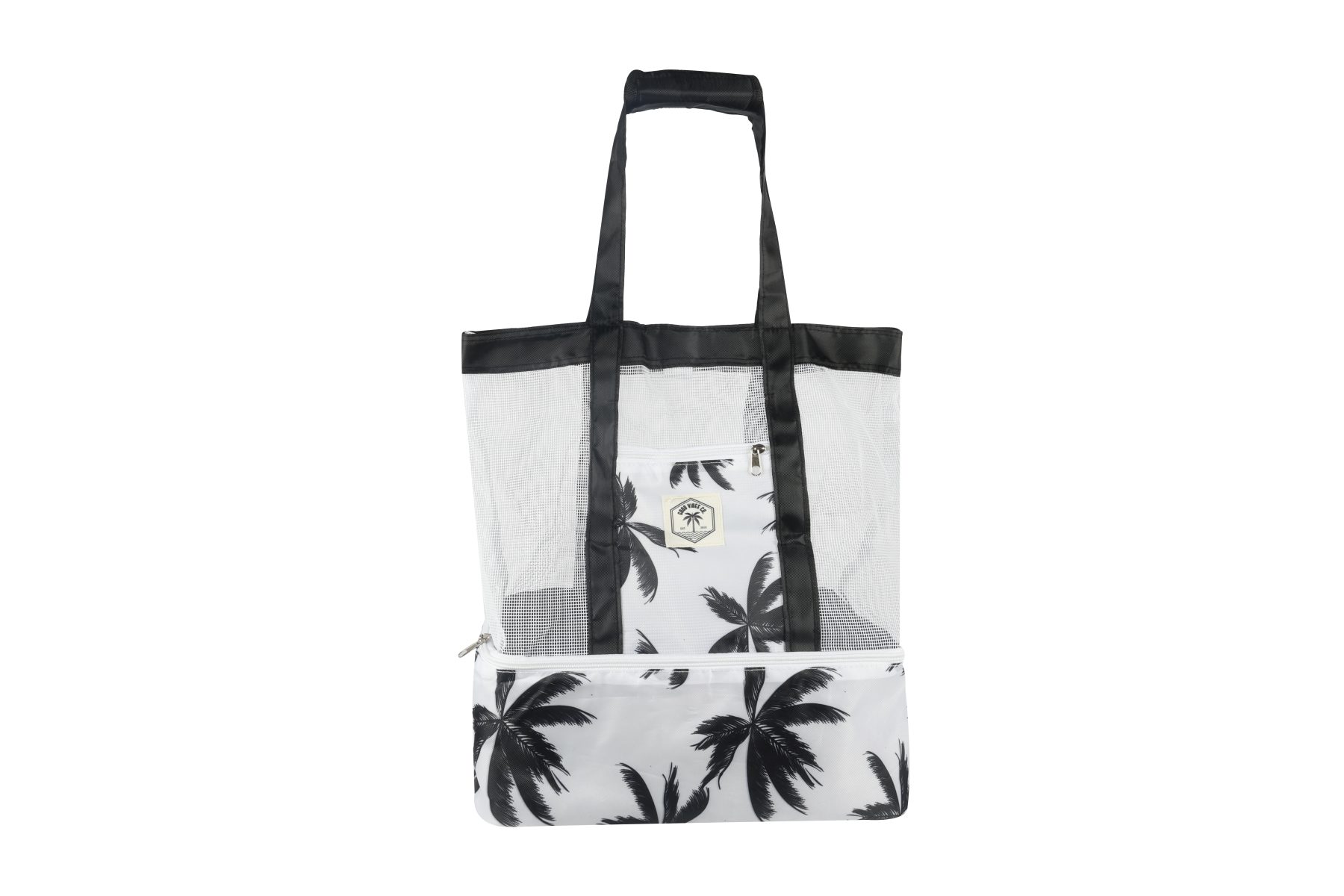 2 IN 1 COOLER BAG WITH ZIPPERED INSULATED BASE FOR FOOD REQUIREMENTS AND TOPPED WITH A TOTE BAG. IN A TROPICAL HAVANA PRINT AND A GENEROUS 47X45X20CM.