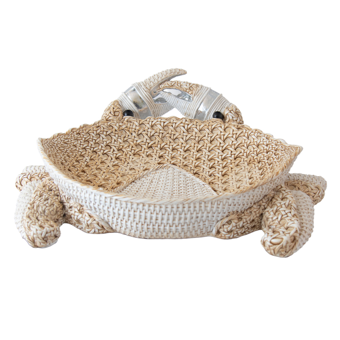 STUNNING CRAB PLATE MADE FROM A RESIN WEAVE IN NATURAL TONES WITH SILVER HIGHLIGHTS. MEASURES APPROX. 33X24X10CM.