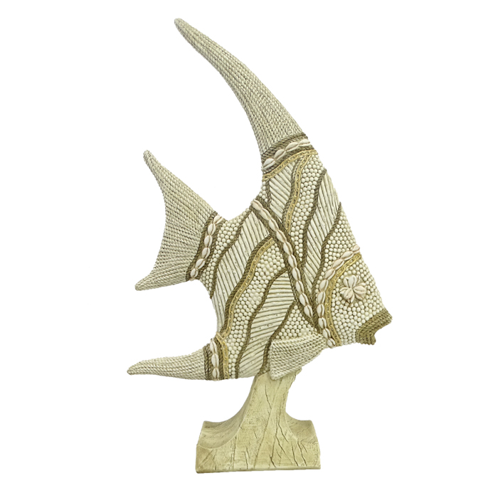 STUNNING FISH ON STAND WITH DECORATIVE CREAM AND GOLD DESIGN. MEASURES 28.5X9X46CM.