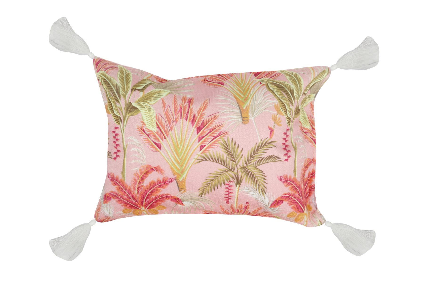 INFLATABLE BEACH PILLOW WITH LUX FABRIC COVER WITH TASSELS. MEASURES 40X29X13CM WHEN INFLATED.