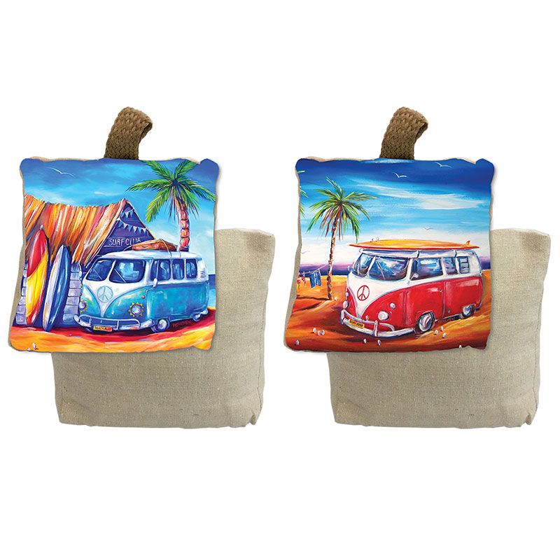 SET OF TWO KOMBI DOORSTOPS IN CLASSIC COLOURFUL KOMBI DESIGN.