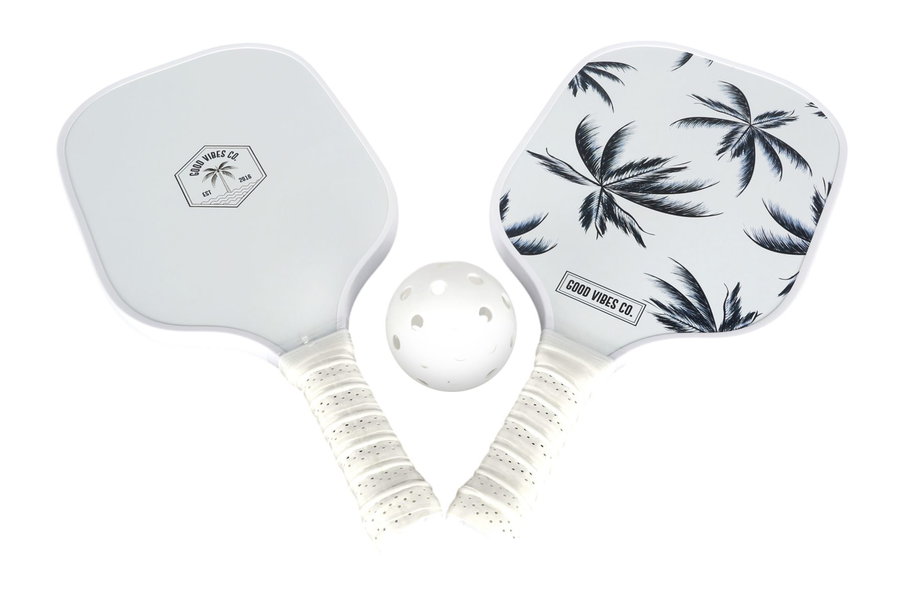 PICKLE BALL SET IN TROPICAL HAVANA PRINT. COMES IN ZIPPERED BAG. PERFECT FOR PICNICS AND DAYS AT THE BEACH.