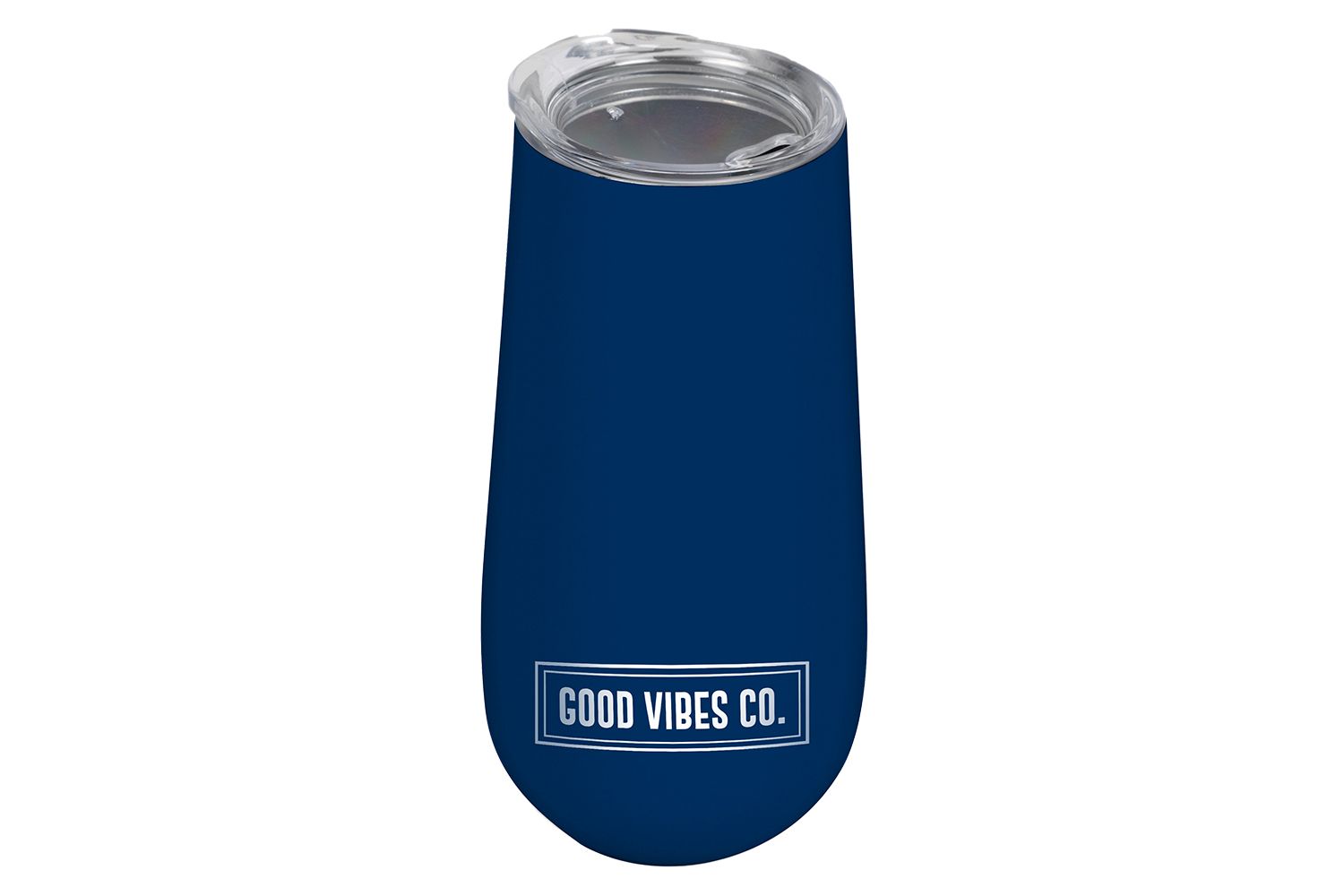 DOUBLE WALLED STAINLESS STEEL TRAVEL CUP FOR ALL OF YOUR SPARKLING DRINKS. 175ML CAPACITY IN INDIGO BLUE WITH REMOVABLE LID.